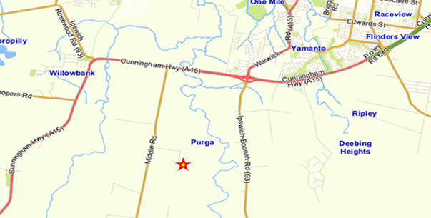 Very easy to locate: Turn off the Cunningham Hwy onto Middle Road, you will see the ‘Moreton Sale Yards’ on your left and will take the next left into Stevens Road. Road takes a sharp turn to the right, then “Sunkissed” is the third (3rd) property on your left.